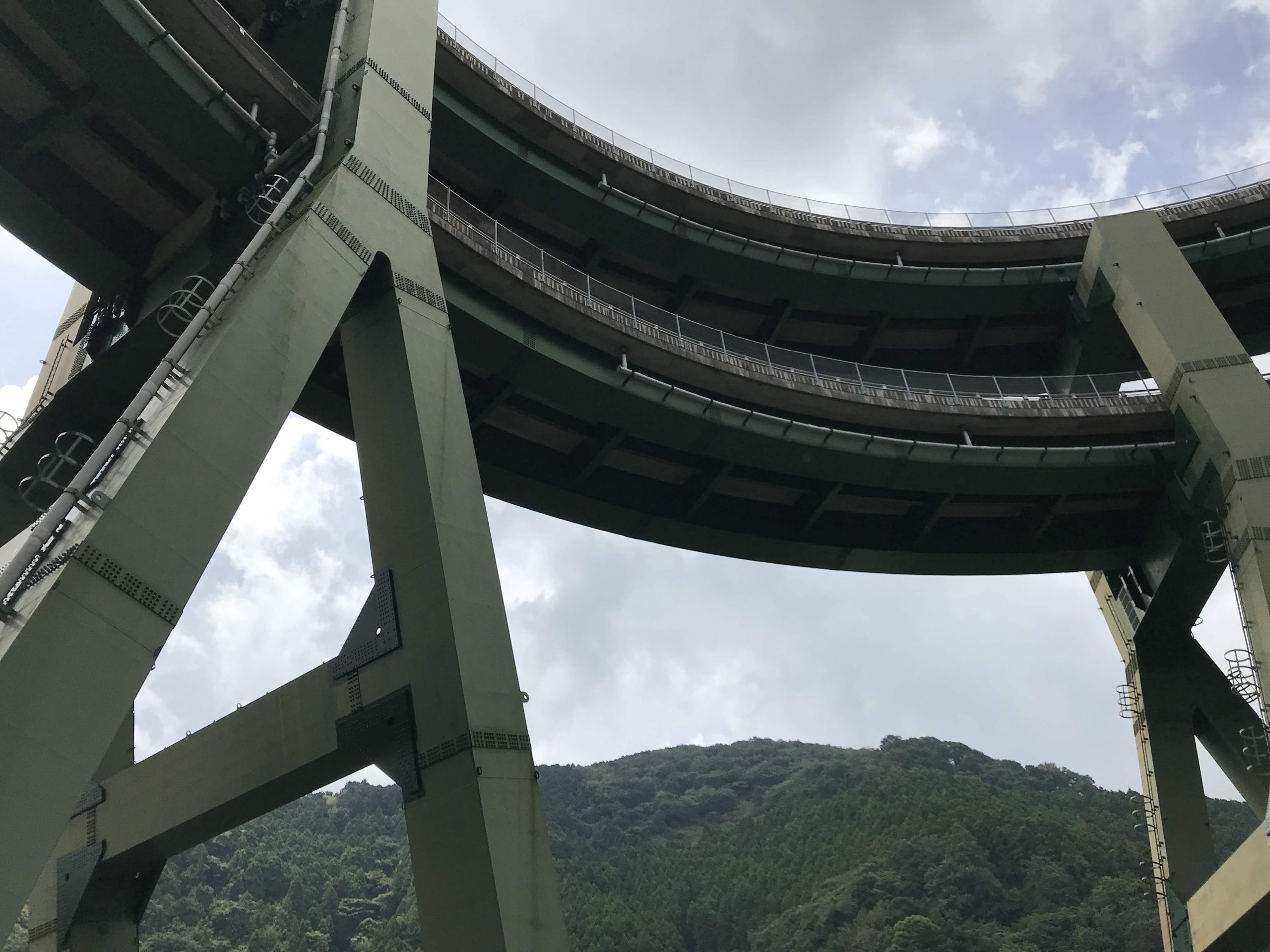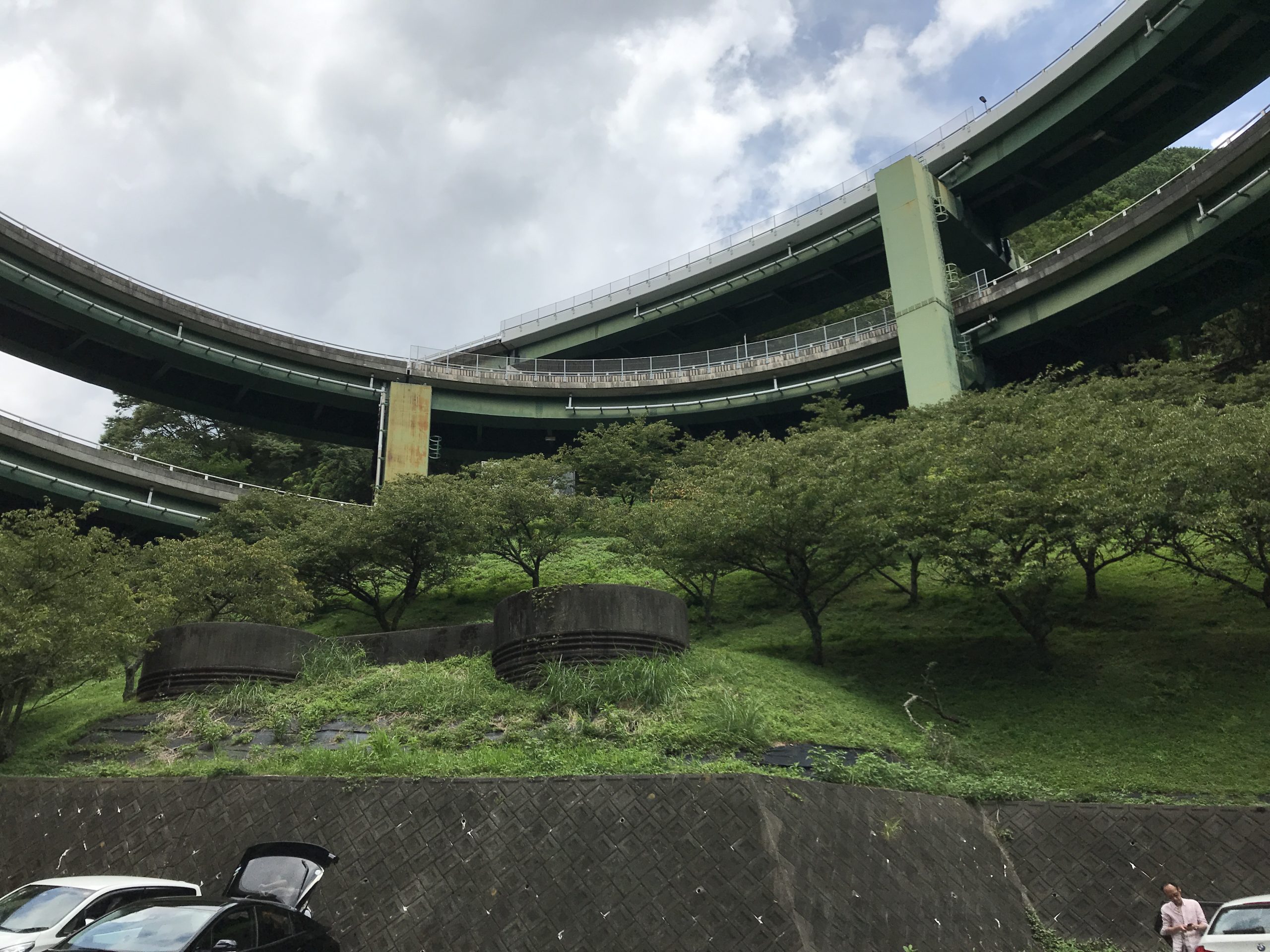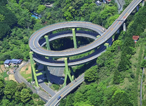 大きな2重ループ橋(道の高低差を2重らせんで継いだ高架橋)です。