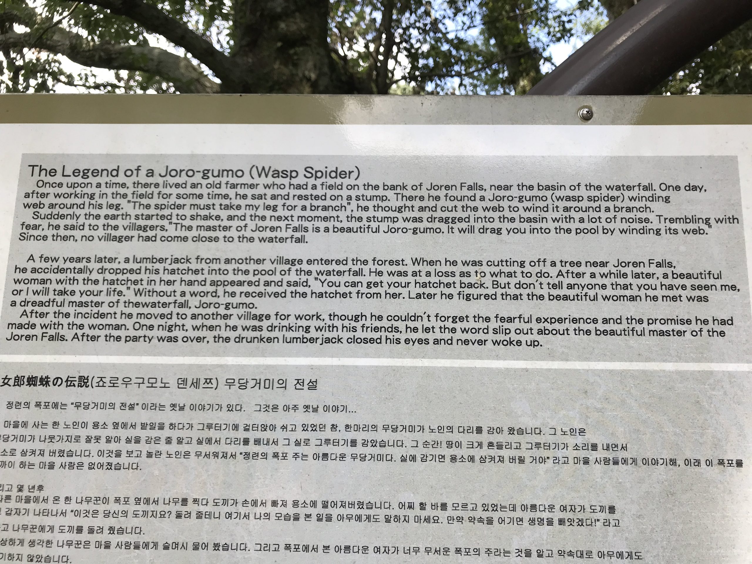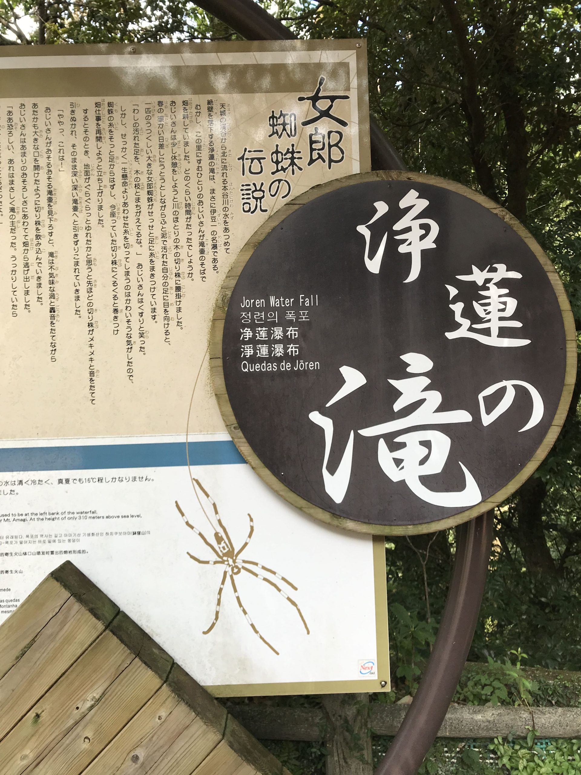 浄蓮の滝の女郎蜘蛛伝説の案内板