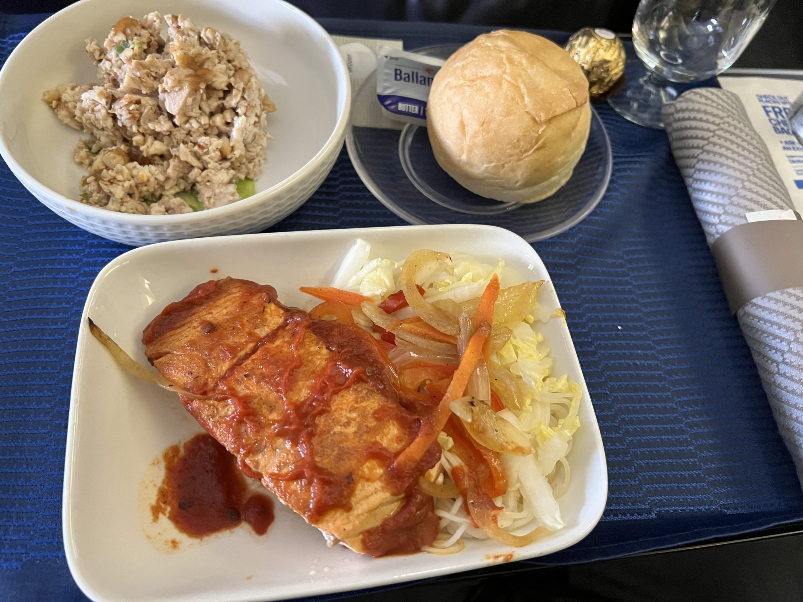 優雅な食事と広々とした座席で、帰りのフライトも夢心地でした。
